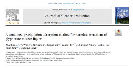 应用化学专业2020级本科生李战辉以第一作者身份在国际知名期刊《Journal of Cleaner Production》(中科院一区Top期刊,影响因子11.072)发表了题为《A combined precipitation-adsorption method for harmless treatment of glyphosate mother liquor》的学术论文。余军霞教授和青年博士李小娣为论文通讯作者,草榴社区