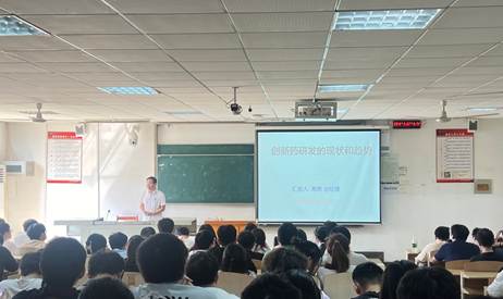 随后,他系统梳理了创新药的完整研发流程,涵盖从药物靶点发现、化合物筛选、临床前研究,到临床试验及上市审批等环节,将这一复杂过程分解为清晰有序的步骤,使学生直观感受到创新药研发的系统性和严谨性。在强调创新药研发的重要性时,高辉指出,创新药不仅是医药行业发展的核心驱动力、能为患者提供更有效的治疗选择,更关乎国家医药产业的核心竞争力和科技实力水平。他还结合本企业的研发实践,通过一系列案例分享,使理论知识更加生动具象。